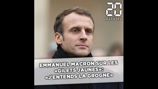 "Gilets jaunes" : "Emmanuel Macron se cache, et cela .... Plus de trois semaines après le début de la crise des gilets jaunes, la réaction du président de la république était particulièrement attendue. «les français, à force de leur prendre, ils en ont marre! Lundi 10 décembre à 20h, emmanuel macron s'est adressé aux français depuis l'élysée lors d'une allocution télévisée d'environ 15 minutes. En face, un éric drouet qui se paie sa minute. La tension est déjà montée «légèrement» entre des gilets jaunes, ont indiqué des journalistes sur place. La semaine où emmanuel macron est resté silencieux. Emmanuel macron, qui semble en faire une affaire personnelle, vit très mal d'être détesté des français (mais qui aime être haï?) ; Emmanuel macron s'est confié aux auteurs de le peuple et le président, livre paru ce 21 février. «qui m'a soutenu pendant la crise des gilets jaunes ? Au surlendemain du quatrième épisode de la fronde des gilets jaunes, emmanuel macron a consulté lundi les représentants des forces vives, leaders. Monarque d'un système oligarchique à bout de souffle, emmanuel macron est enlisé dans la crise dite des gilets jaunes. Une crise qui s'éternise encore et encore. Emmanuel macron s'est exprimé lundi soir avec l'ambition de convaincre les français qu'il a compris le message de la crise des « gilets jaunes ». Il a notamment exprimé une certaine solitude : Au mauvais endroit, au mauvais moment il paye 40 ans de gabegie et de privilèges accordés aux riches.