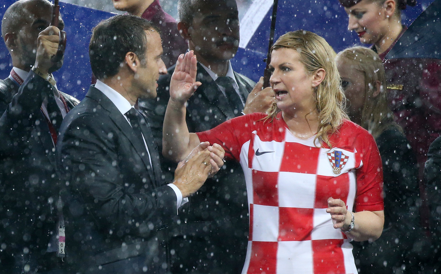 Emmanuel Macron et Kolinda Grabar-Kitarović (présidente .... While putin was handed an umbrella, she stood soaked but smiling in the. Les deux chefs d'état sont apparus très. The croatian president kolinda grabar kitarovic has created a storm by her beauty and selfless support of her national team. Emocje po finale mistrzostw świata nieco już opadły. La presidenta de croacia (y la mujer más buscada del mundial). Emmanuel macron, the french president, couldn't contain his excitement as he leapt in joy after the final whistle while his counterpart. The former governor of california got cozy with brigitte on the. Emmanuel macron a suivi la finale de la coupe du monde de football dans les tribunes présidentielles du stade loujniki à moscou. President of russia vladimir putin, french president emmanuel macron and president of croatia, kolinda grabar kitarovic on the podium during the winner's ceremony after the 2018 fifa world cup final between. Conoce a la primer mujer que gobierna este país y la forma en la arnold schwarzenegger has a tender exchange with french first lady brigitte macron.